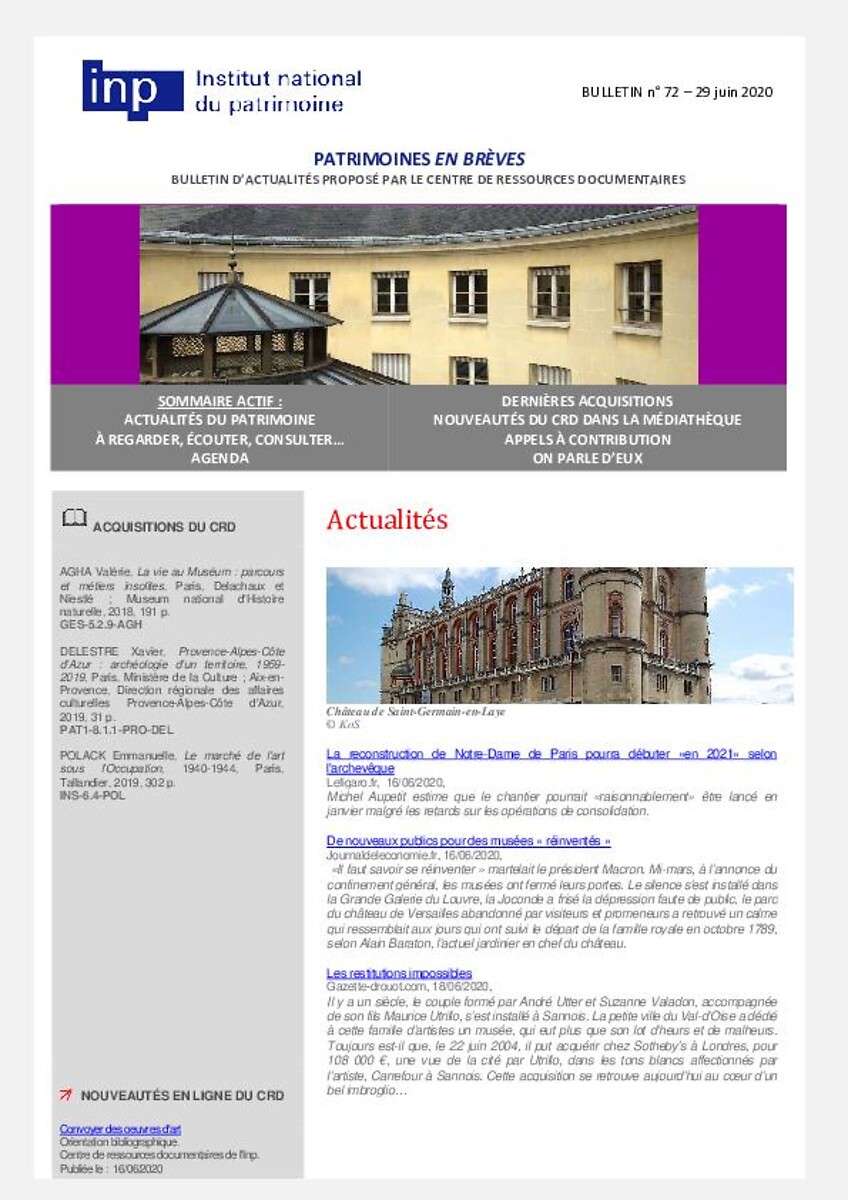 Patrimoines en brèves n° 72