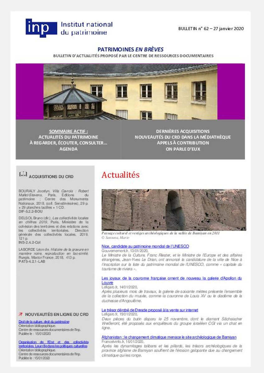 Patrimoines en brèves n° 62