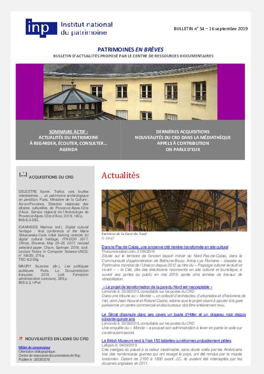 Patrimoines en brèves n° 54