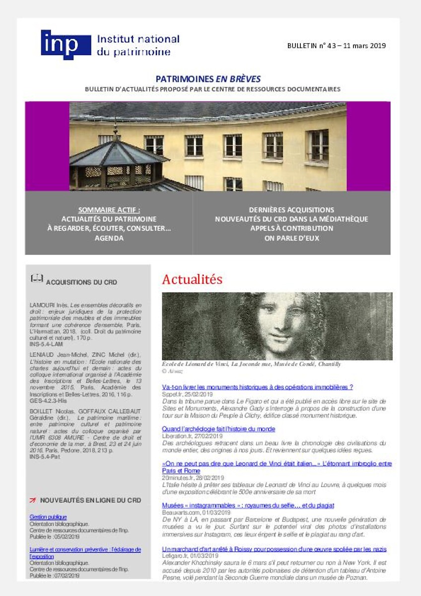 Patrimoines en brèves n° 43