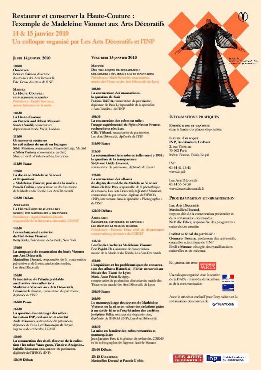 Programme Restaurer et conserver la Haute-Couture : l’exemple de Madeleine Vionnet aux Arts Décoratifs
