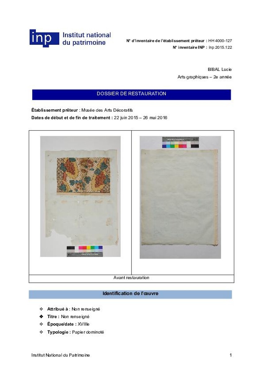 Dossier de restauration (Trois dessins du Musée des Arts Décoratifs) [Ginp 190]