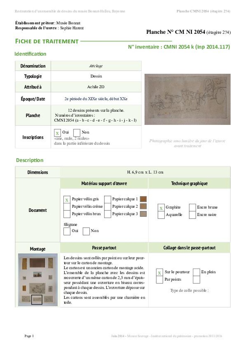 Fiche de traitement (Attelage, dessin attribué à Achille Zo)