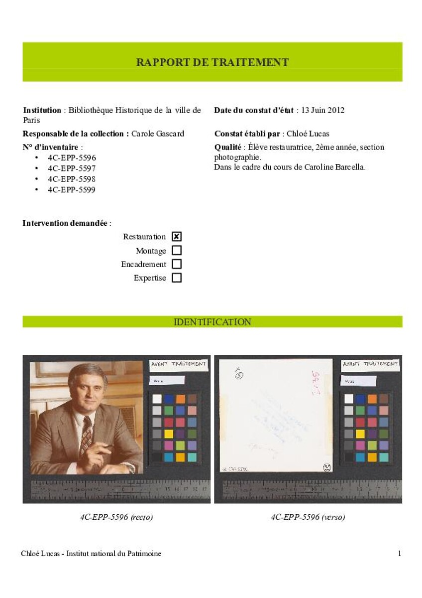 Rapports de traitement et propositions de montages pour quatre œuvres de la Société Française de Photographie [S.n.]
