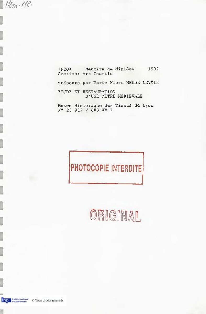 Etude et restauration d'une mitre médiévale, Musée historique des Tissus de Lyon : étude de l'influence de l'état hygrométrique sur les variations dimentionnelles de la toile de lin