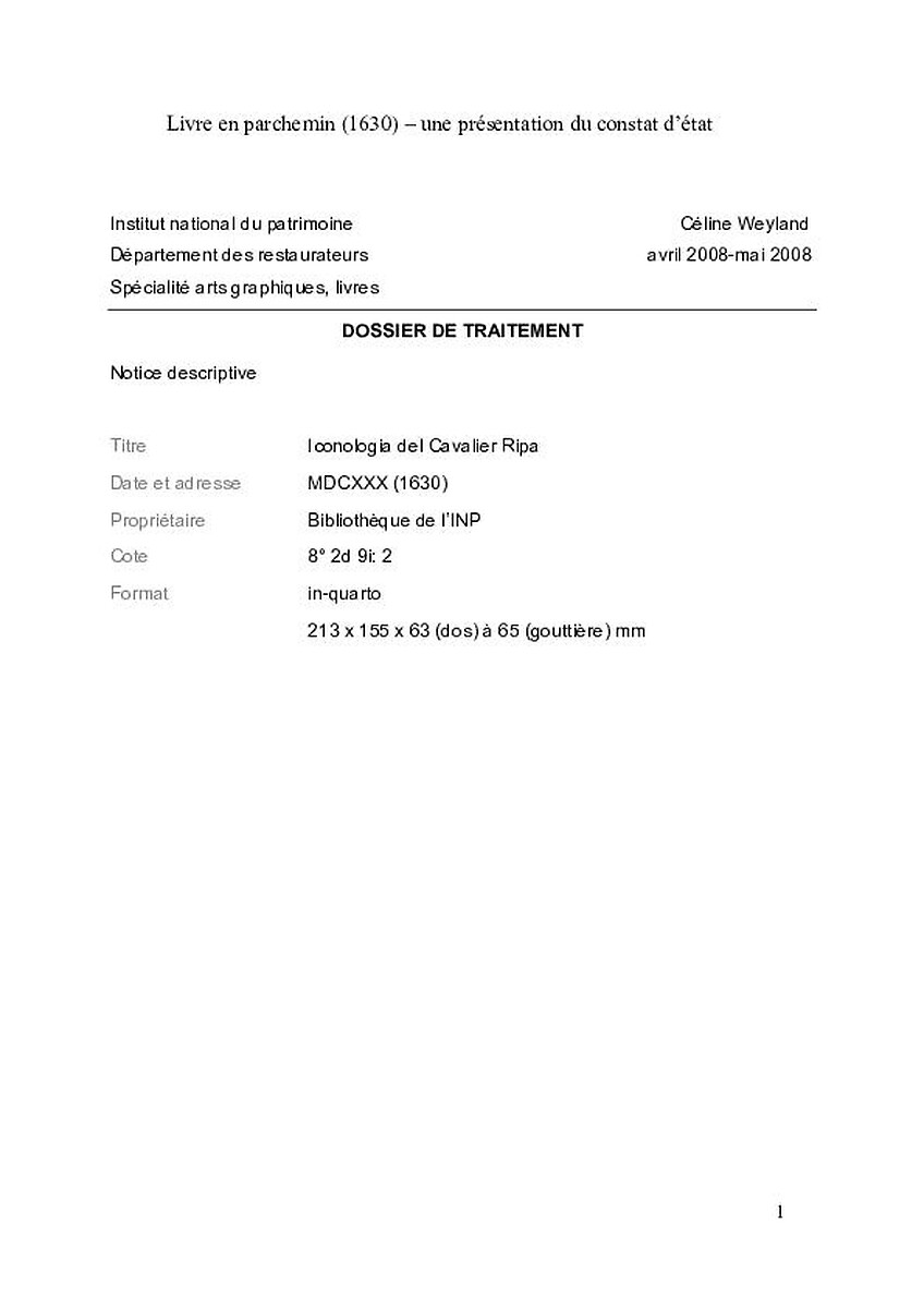 Dossier de traitement : Iconologia del Cavalier Ripa [Pas de N° INP]