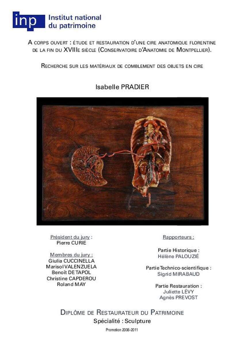 A corps ouvert : étude et restauration d'une cire anatomique florentine de la fin du XVIIIe siècle (Conservatoire d'anatomie de Montpellier) : recherche sur les matériaux de comblement des objets en cire