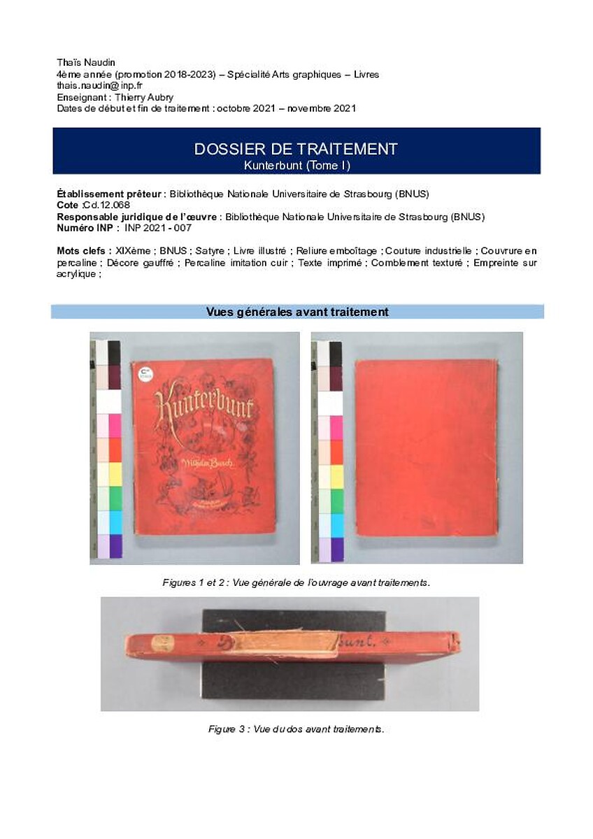 Dossier de traitement: "Kunterbunt" (Tome I) [Erreur dans le n° Inp: 2021-102]