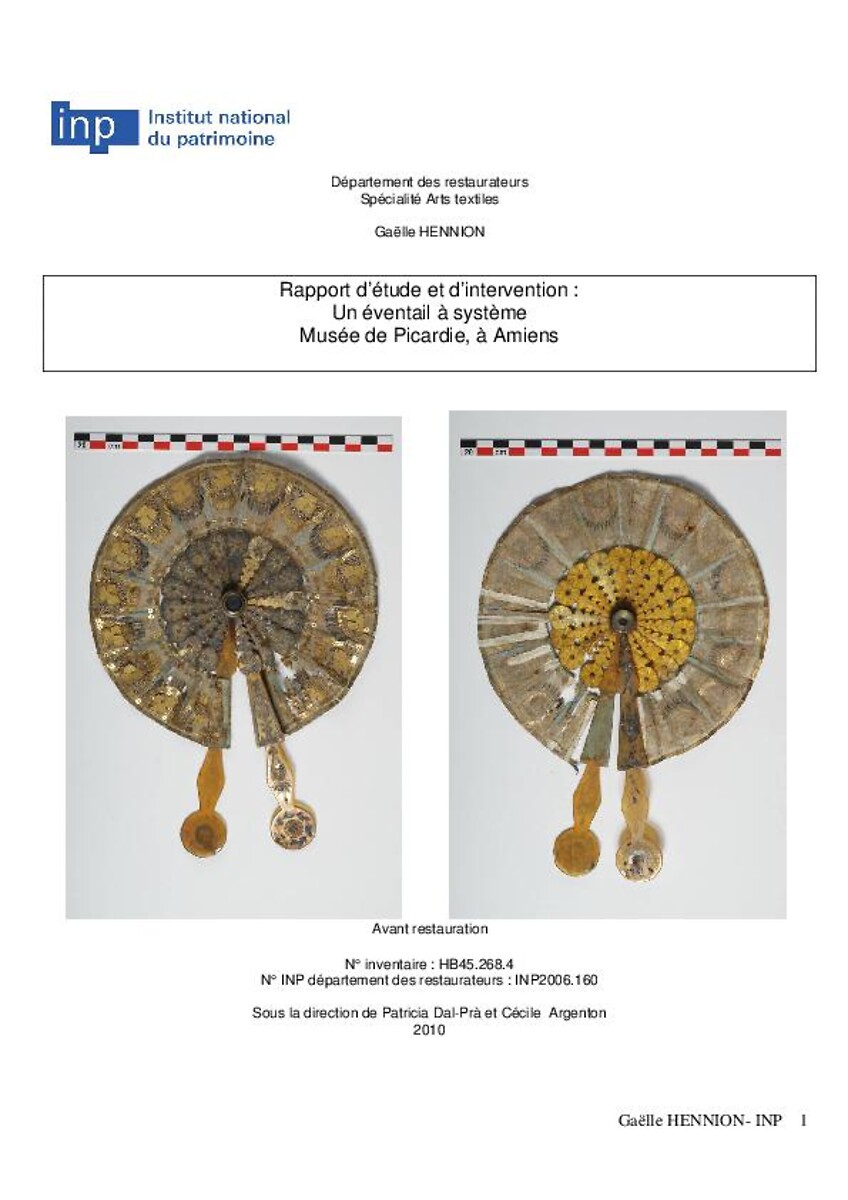 Rapport d’étude et d’intervention : Un éventail à système Musée de Picardie, à Amiens