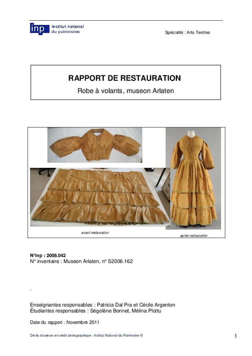 « L'arlésienne révélée. » Etude et conservation-restauration d'un droulet à falbalas imprimé et d'une jupe assortie (XVIIIe siècle), Paris, Musée des arts décoratifs) : l'impression de mordant de fer : recherche d'un traitement désacidifiant et inhibiteu…