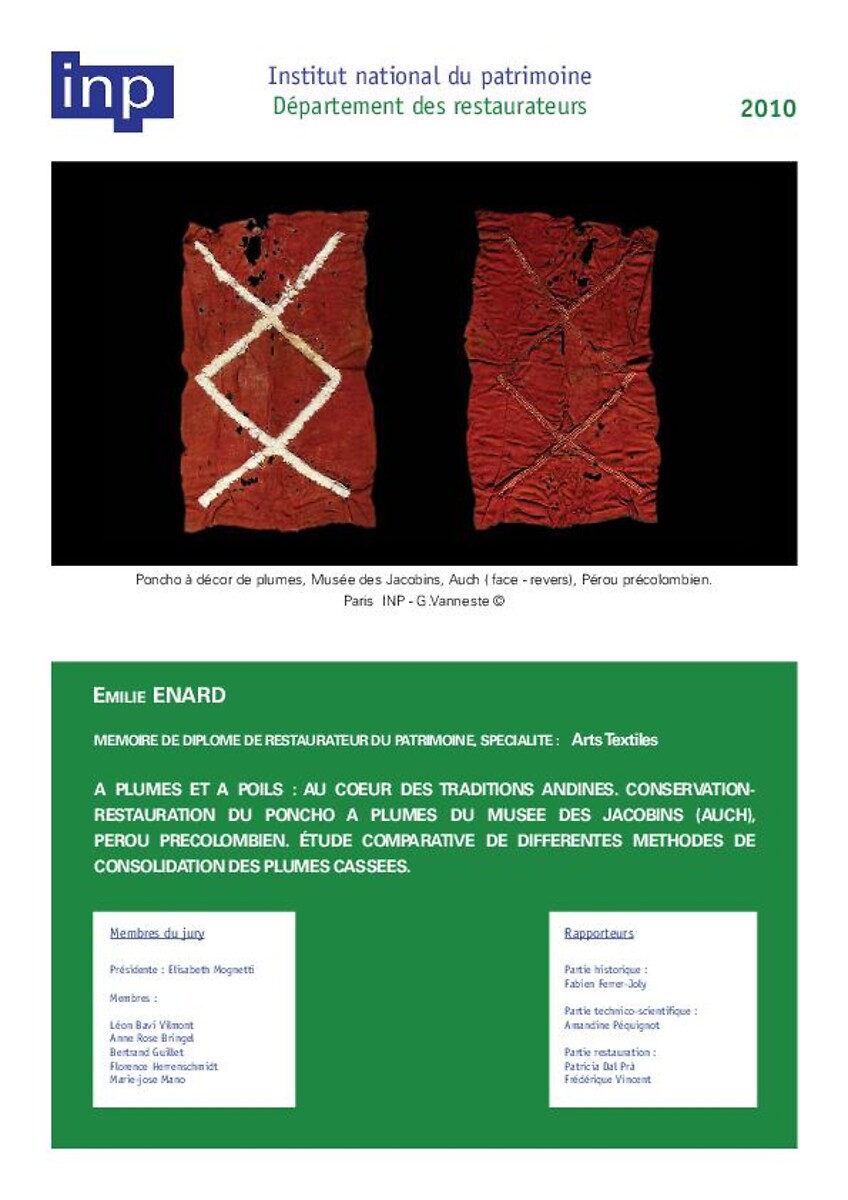 A plumes et à poils. Conservation-restauration du poncho à plumes précolombien, Pérou (Musée des Jacobins, Auch) : Étude comparative de différentes méthodes de consolidation des plumes cassées
