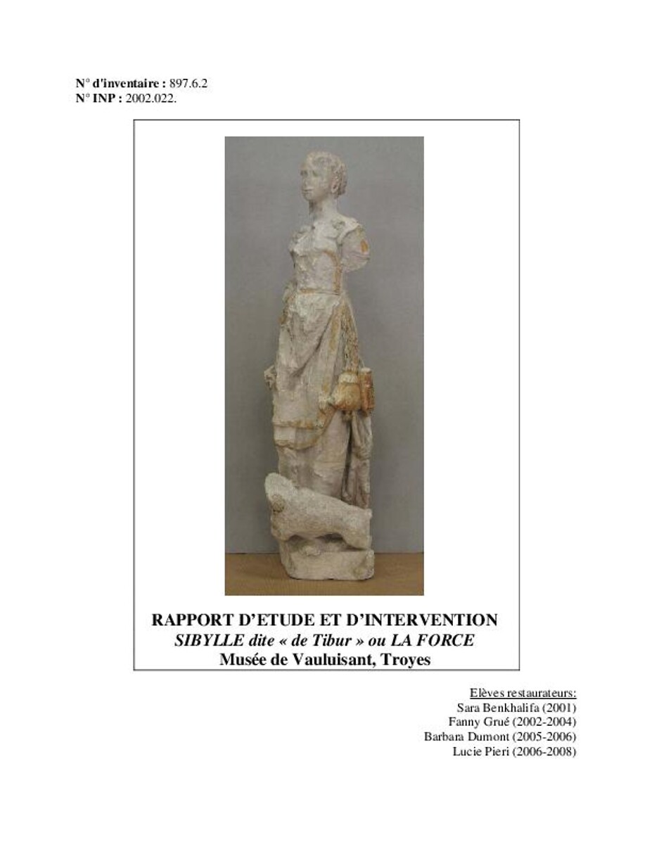 Rapport d'étude et d'intervention: Sibylle dite "de Tibur" ou La Force,